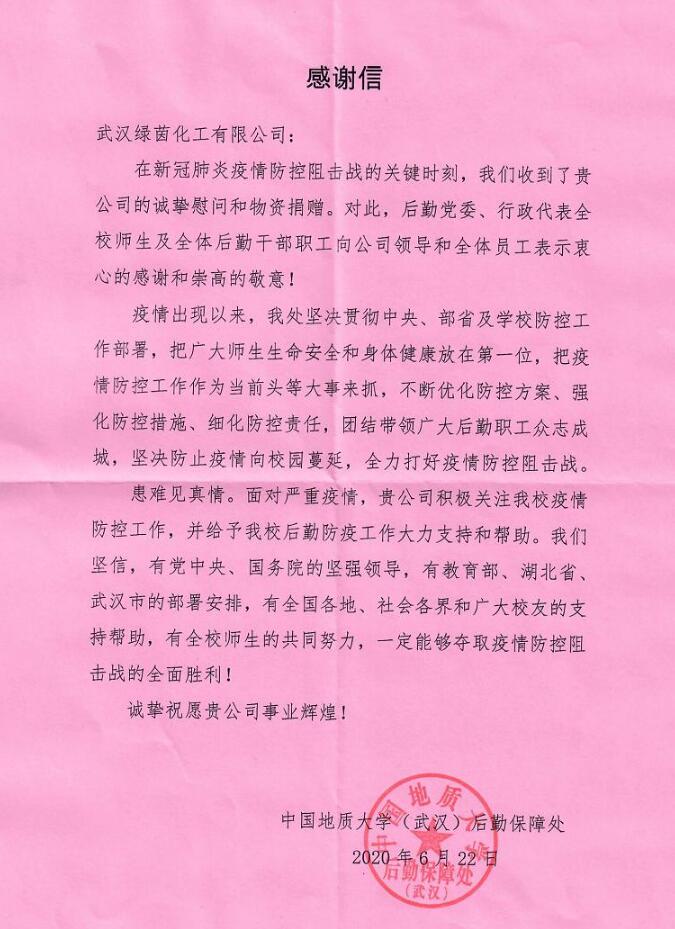 感謝信-中國(guó)地質(zhì)大學(xué)